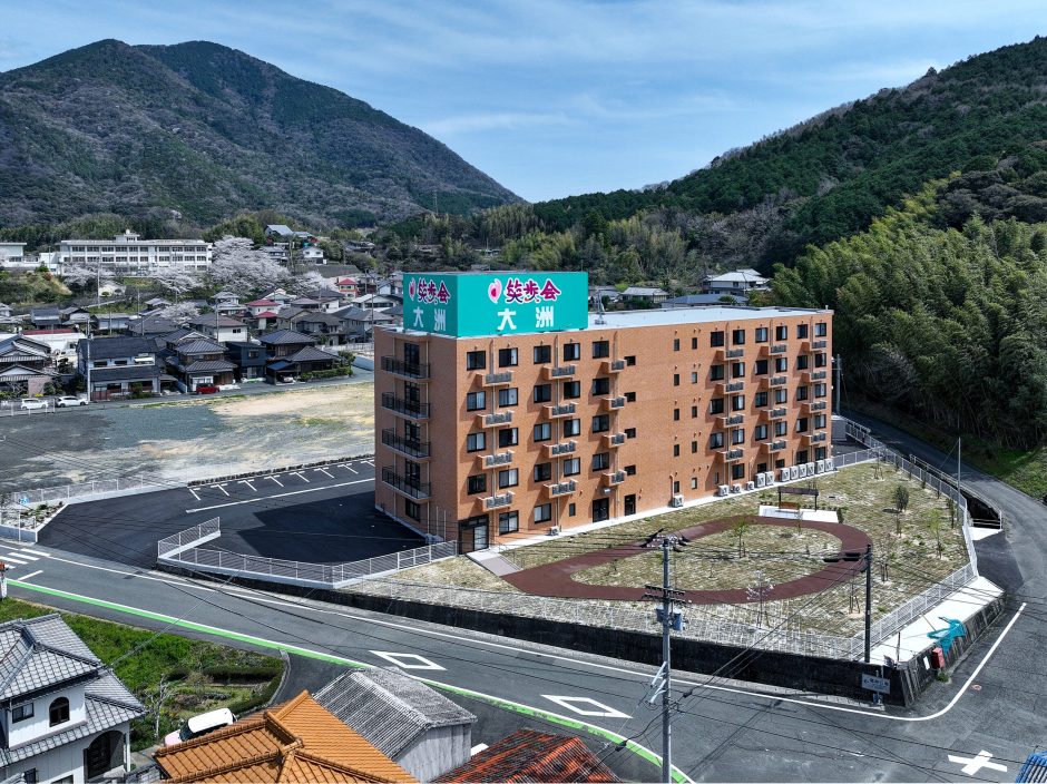 令和6年7月に有料老人ホーム笑歩会大洲が設立し、同日にデイサービス笑歩会大洲も運営が開始されました。宇和島自動車道下り(宇和島方面行)から左手に大きく見えてきます。1階がデイサービス、2~5階が有料老人ホームの施設になっております。